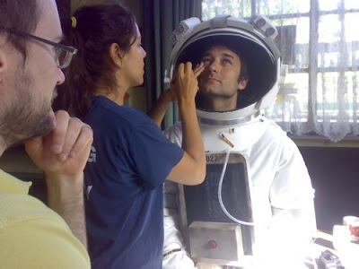 Here is producer Miss Lisa doubling up on makeup. Director Jackson looks on.